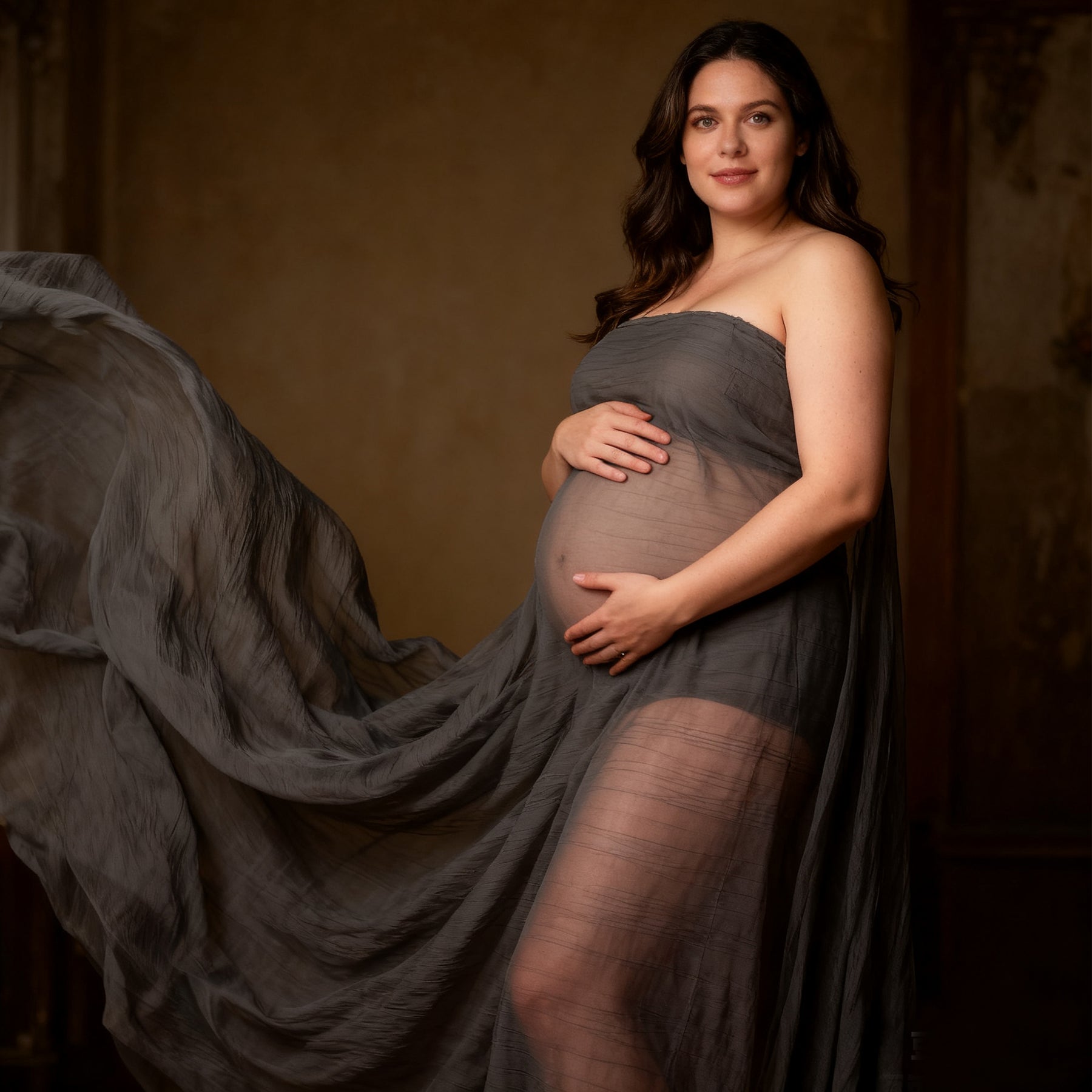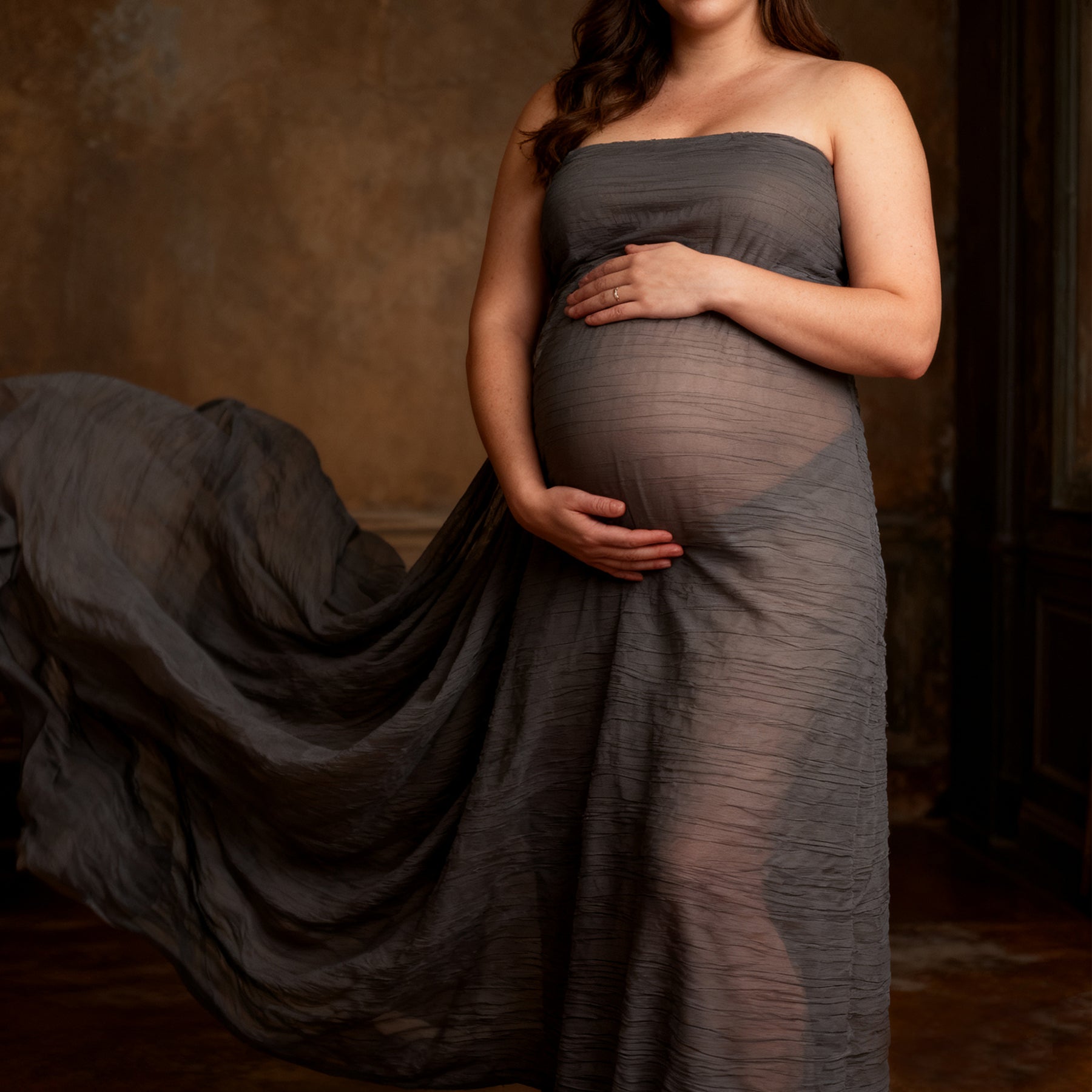 Product name: Soft Gray Chiffon Wrap – Maternity or Non-maternity Wrap Gown for Photoshoot