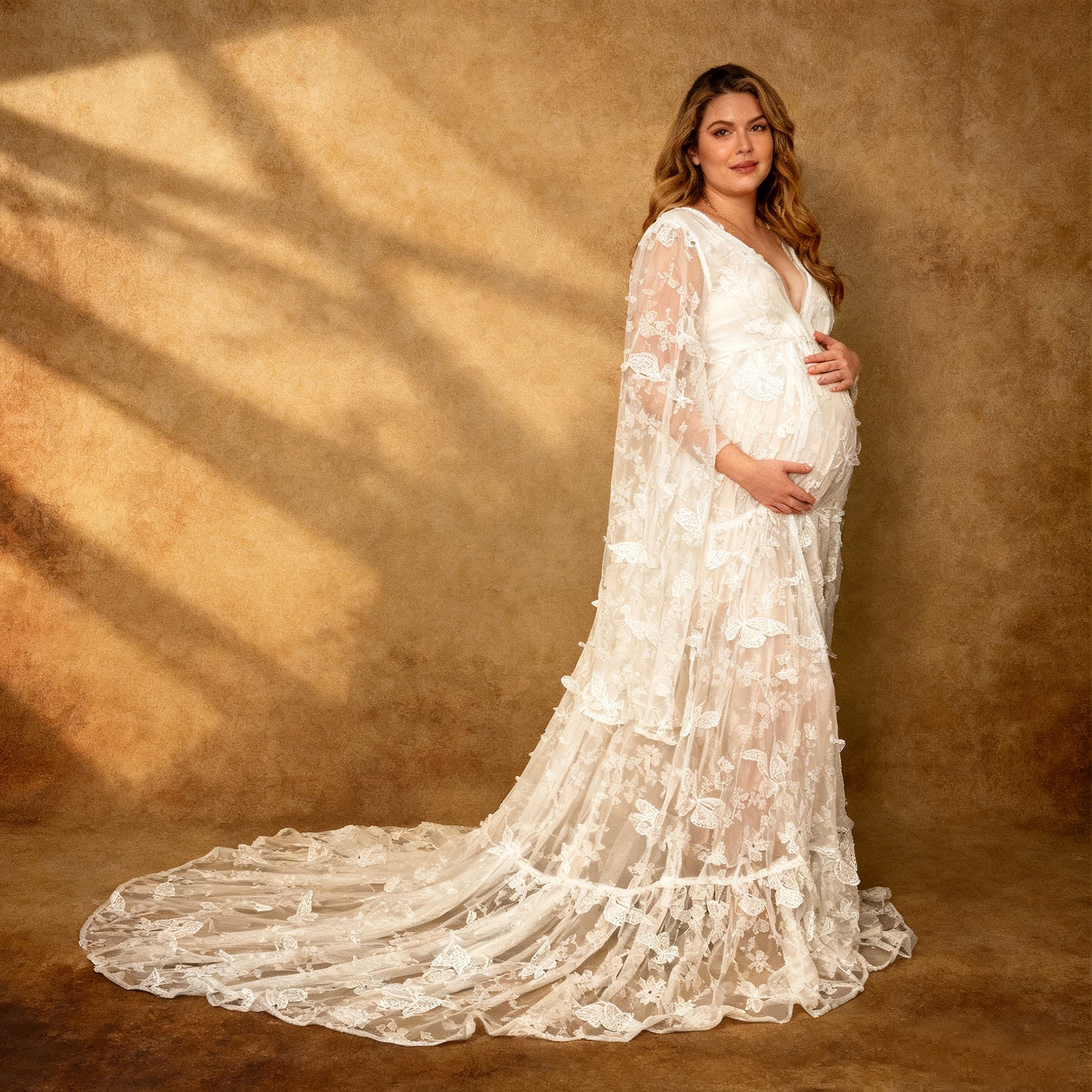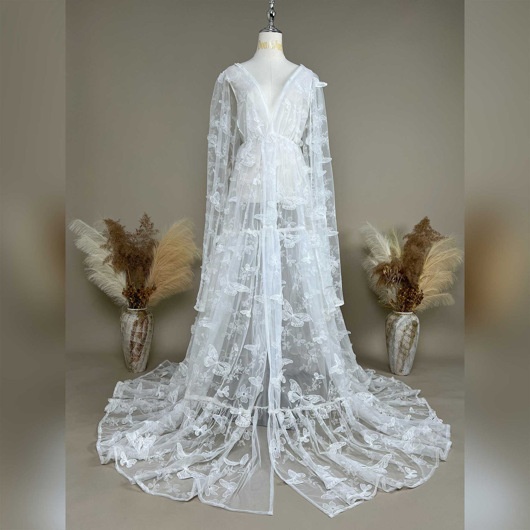 Product name: White Butterfly Extra Long Sleeves Tulle Maternity or Non-maternity Gown for Photoshoot Baby Shower