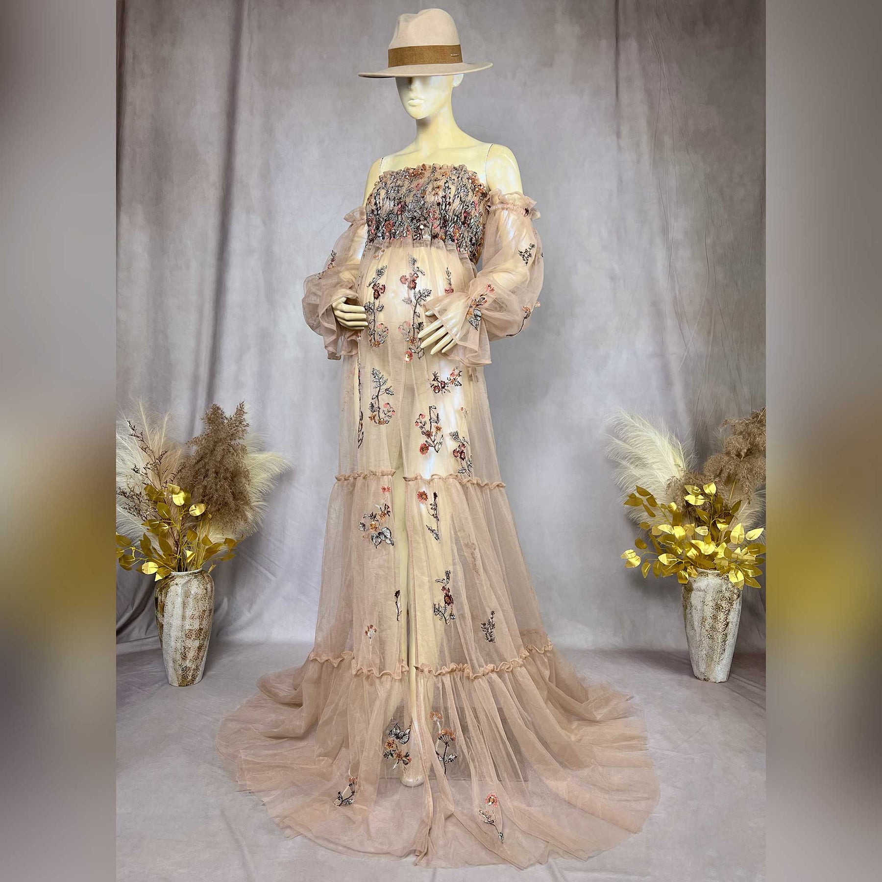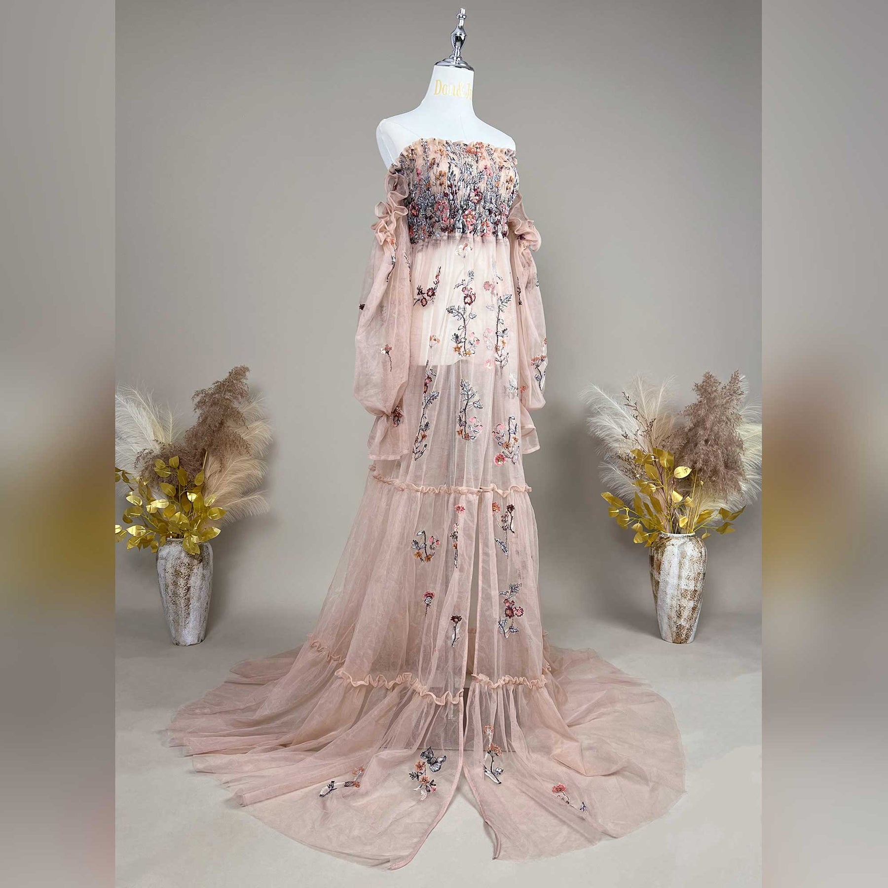 Product name: Tulle Floral Embroidered Front Slit DressMaternity and Non-maternity Gown Photography Dress Evening Party Baby Shower for Photo Shoot