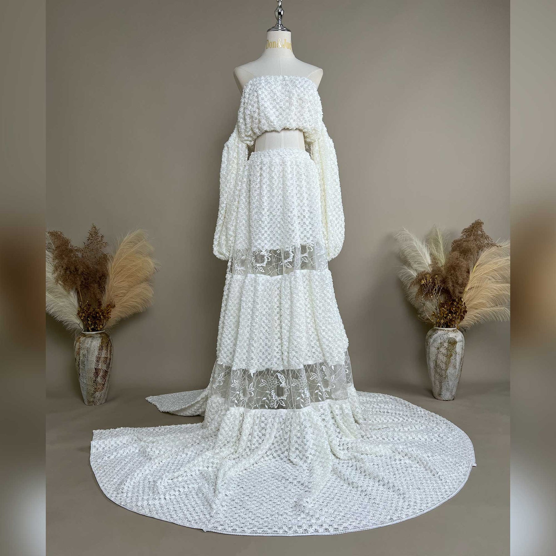 Product name: Stylish White Two-Piece Strapless Gown – Maternity or Non-maternity Dresses for Photography Props & Baby Shower Photos